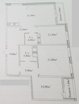 Состояние от строителей, выполнена стяжка пола, установлена бронированная дверь и металлопластиковые окна. 2 балкона с панорамным остеклением.