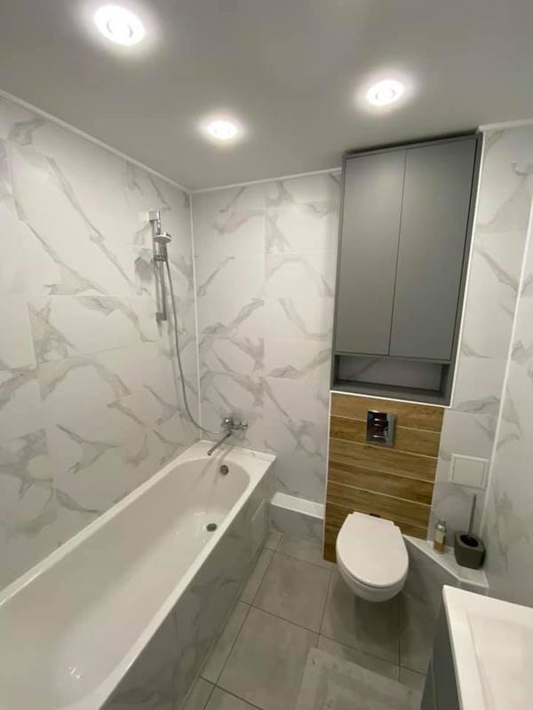 Просторный санузел (установлен бойлер, вода всегда горячая), с хорошей сантехникой.