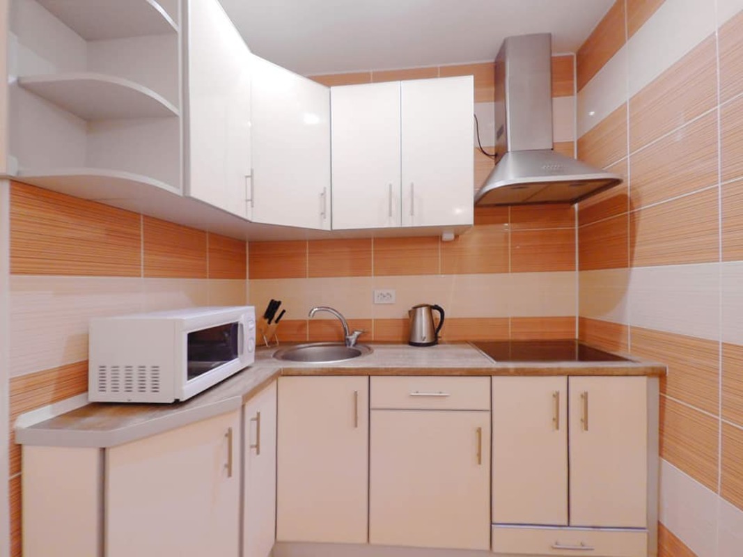 Укомплектована всей необходимой мебелью и техникой: бойлер/ Электрочайник/ Холодильник / Микроволновая печь/ СМА /