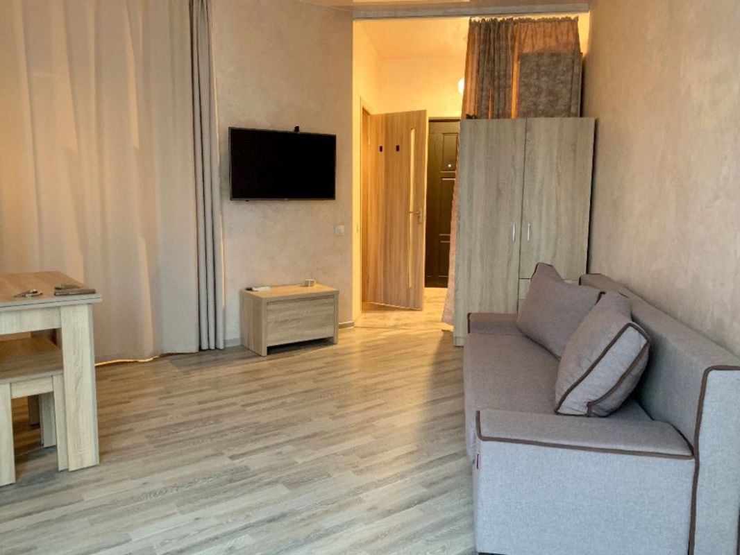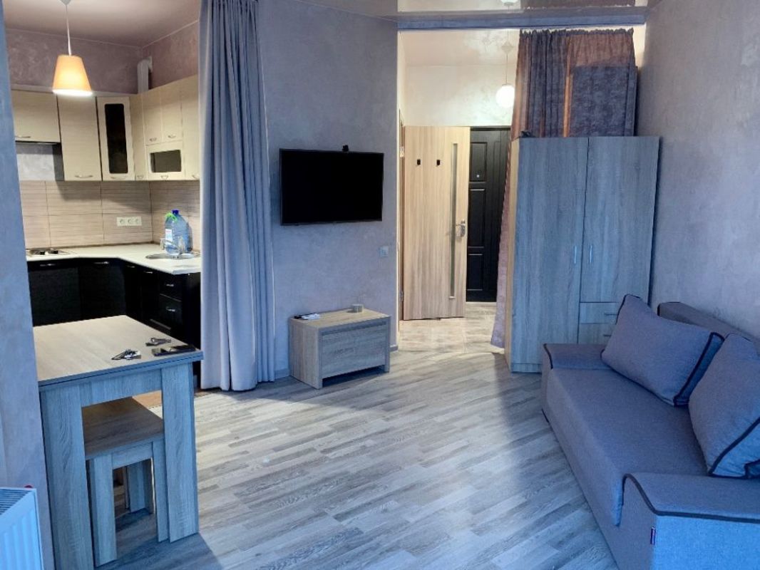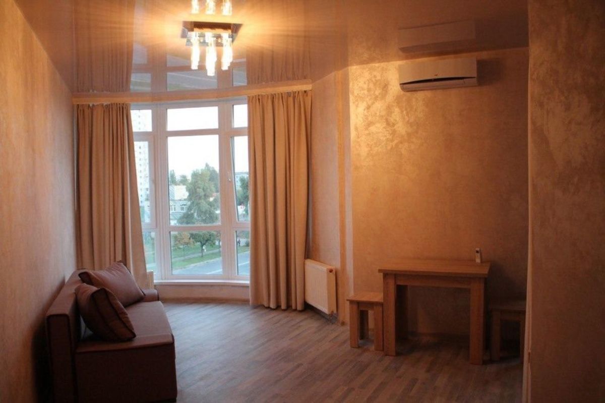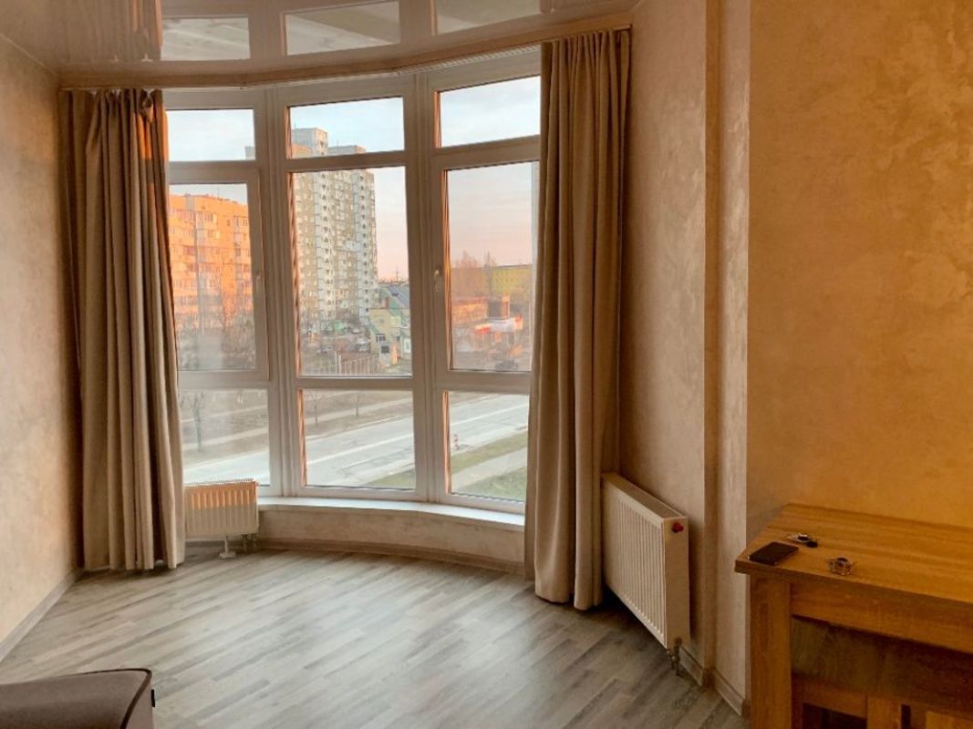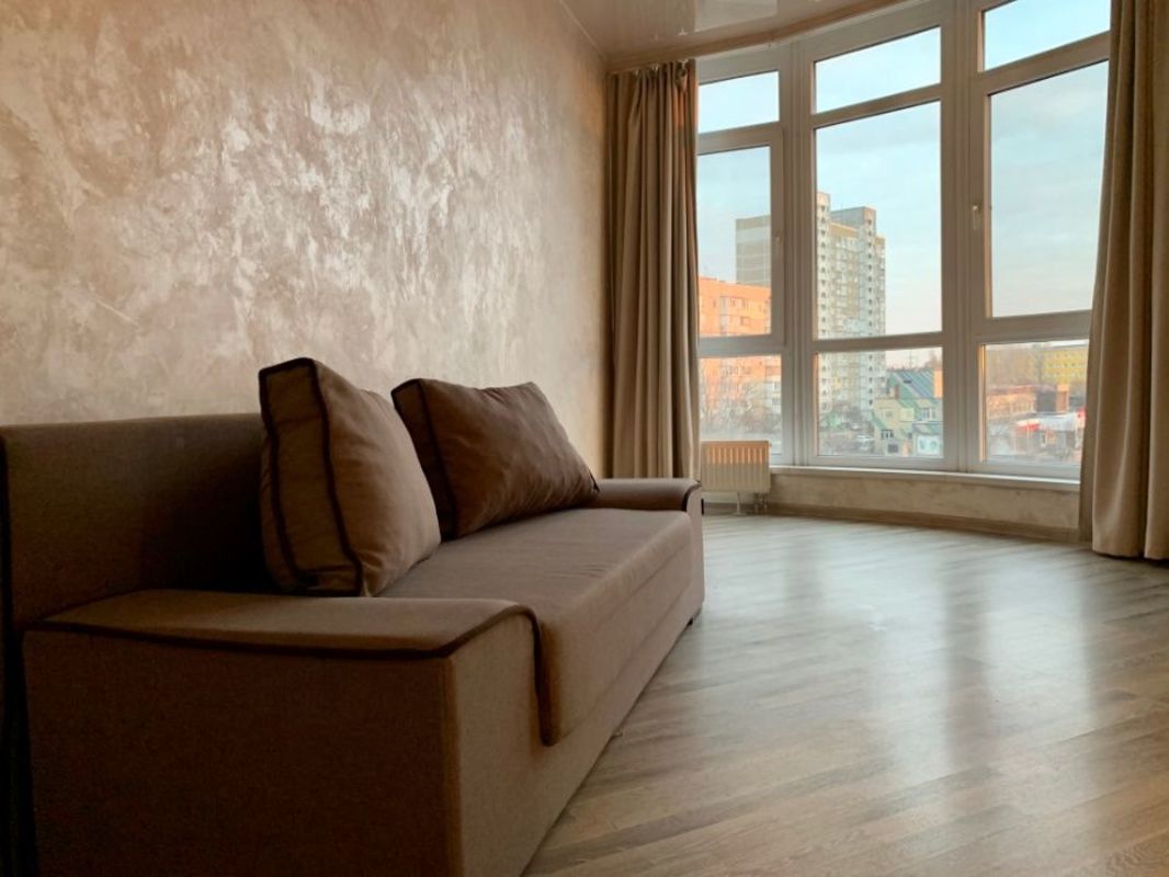 Видовая квартира-студия 31 кв.м. Улица радужная 50. Днепровский район Долгосрочная аренда квартиры – студии 31 кв.м. Вторая сдача! Ул. Радужная 50 (недалеко радужный массив), клубный дом 7 этажей, квартира 6й этаж, есть лифт и просторная лестничная клетка, газовое отопление, электрическая плита, мебель новая, пол ламинат, кухня и комната отдельно, имеется бытовая техника, большие панорамные окна, просторный балкон, закрытый двор, парковка, консьерж. Уютно и комфортно. Днепровский район (ул. Радужная 50), ближайшие станции метро Дарница и метро Левобережная. Состояние квартиры как на фото. Современный ремонт, классные натяжные потолки, бытовая техника и все удобства. В доме всего 7 этажей, квартира находится на 6-м этаже, из квартиры открывается интересный вид и панорамное окно этому лишь способствует, ощущение открытого пространства. Дом уютный, зимой в квартире тепло. Мебель новая, диван, 2 шкафа, пол – всё как на фотографии. Большой телевизор, холодильник, стиральная машина. Кухня имеет перегородку и выход на балкон. Балкон больше среднего и тёплый, на нём можно отдыхать даже зимой, либо же хранить вещи. Дом абсолютно новый и современный, находится рядом с озером, закрытая территория, есть место для парковки, консьерж в парадном. Много территории для прогулок и занятий спортом. На территории есть кафе и зоны отдыха. Подход к парадному закрывается и пройти могут лишь те, у кого есть ключ. Лестничная клетка очень просторная, лифт работает безотказно.