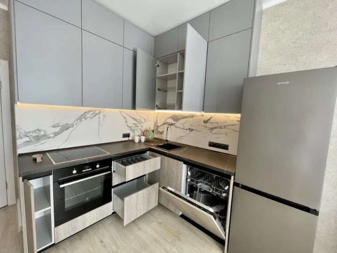 8564 Продается шикарная, стильная квартира в качественном новом доме от ведущей строительной компании «Будова» ЖК ОМЕГА! Прекрасная инфраструктура с детскими площадками, магазинами, торговыми центрами и всем, что необходимо для комфортной жизни! Сама квартира находится на 19 этаже с прекрасным видом из окон. В квартире есть все, что нужно - бытовая техника, мебель. Квартира состоит из отдельной уютной спальни, просторной кухни-гостиной, гардеробной, оборудованной множеством шкафчиков, полок и ящичков для удобства хранения всего необходимого, прихожей и прекрасного сан.узла в светлых тонах. Ремонт из качественных материалов и прекрасно подобранных светлых тонов в интерьере, что позволит новым хозяевам наслаждаться уютом и гармоничной атмосферой в их новом доме.