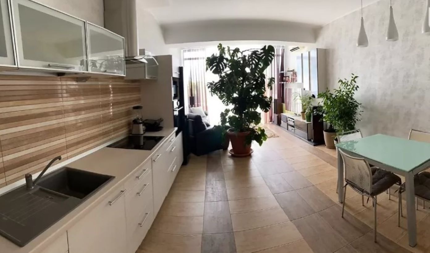 9297 Продаётся 2-х комнатная квартира в кирпичном доме в курортном районе Фонтана. Кухня-гостиная и две спальни. Стильный новый ремонт. Современная мебель. Укомплектована всей техникой. 3 кондиционера. Заходи и живи. Светлая, тёплая и очень просторная квартира. Из окон видно море. Панорамное остекление. Есть паркинг. Территория дома закрыта и находится под охраной. До моря пешком 5 минут.