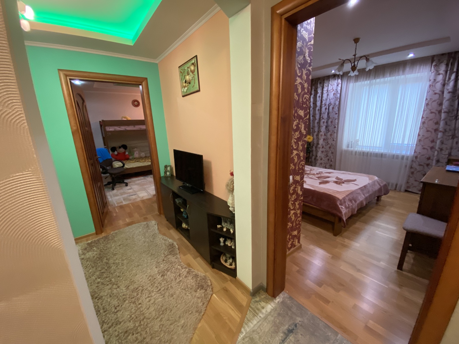 Квартира продається повністю з меблями та технікою що на фото. Дві кімнати - роздільні, переплановано ще також 3тю кімнату- прохідну. Кухня має велику площу, збільшену за рахунок балкону. Санвузол сумісний. Усі перепланування узаконено, та відображено у технічному паспорті. У дитячій кімнаті велика шафа-гардероб, та балкон.