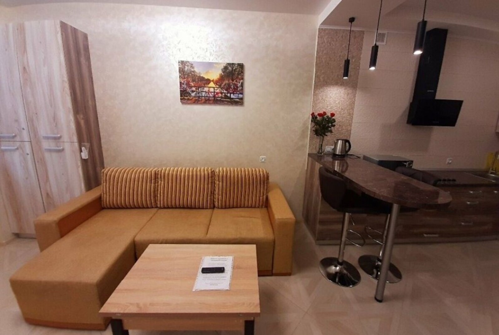 Квартира розташована неподалік зупинки громадського транспорту і продуктового магазину.