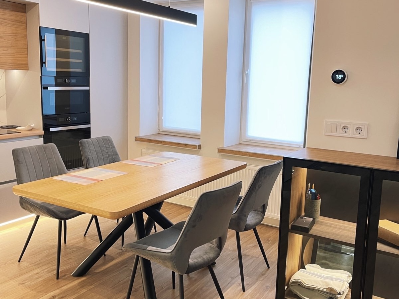 Розкладний диван з повноцінним двоспальним місцем бренду Blest. Апартаменти сонячні та теплі. Додатковий комфорт зарахунок присутності лише двох квартир на поверсі.