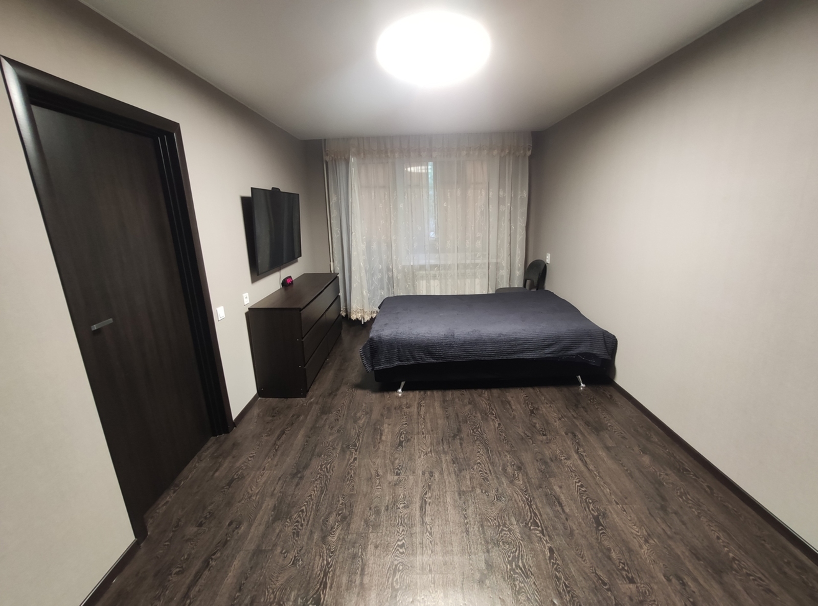 Заменены все коммуникации, выровнены стены, пол, натяжные потолки.