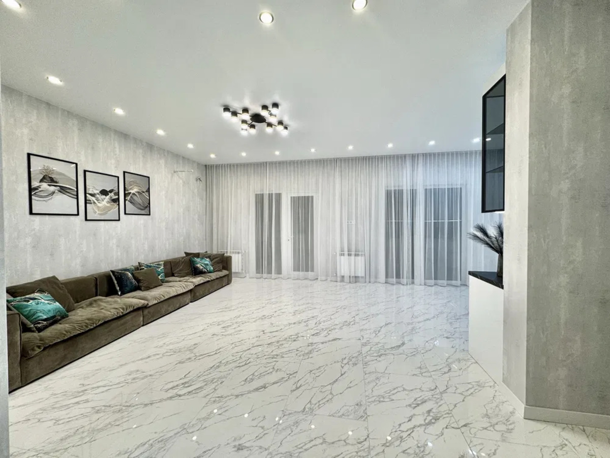 Будинок має 3 кімнати на другому поверсі та гостьову кімнату(кабінет) на першому. В майстер-спальні вмістка гардеробна та балкон. 2 санвузли: один на першому поверсі з душовою кабіною та сучасною душсистемою, а на другому з ванною та є ЛЕД лампа зі вмонтованим динаміком для музики). На першому поверсі простора кухня-вітальня з виходом на терасу, техприміщення. Ділянка має 4сотки. Прокладений авто полив та виведене вуличне освітлення. Зроблений ландшафт. Є навіс для 2 авто.