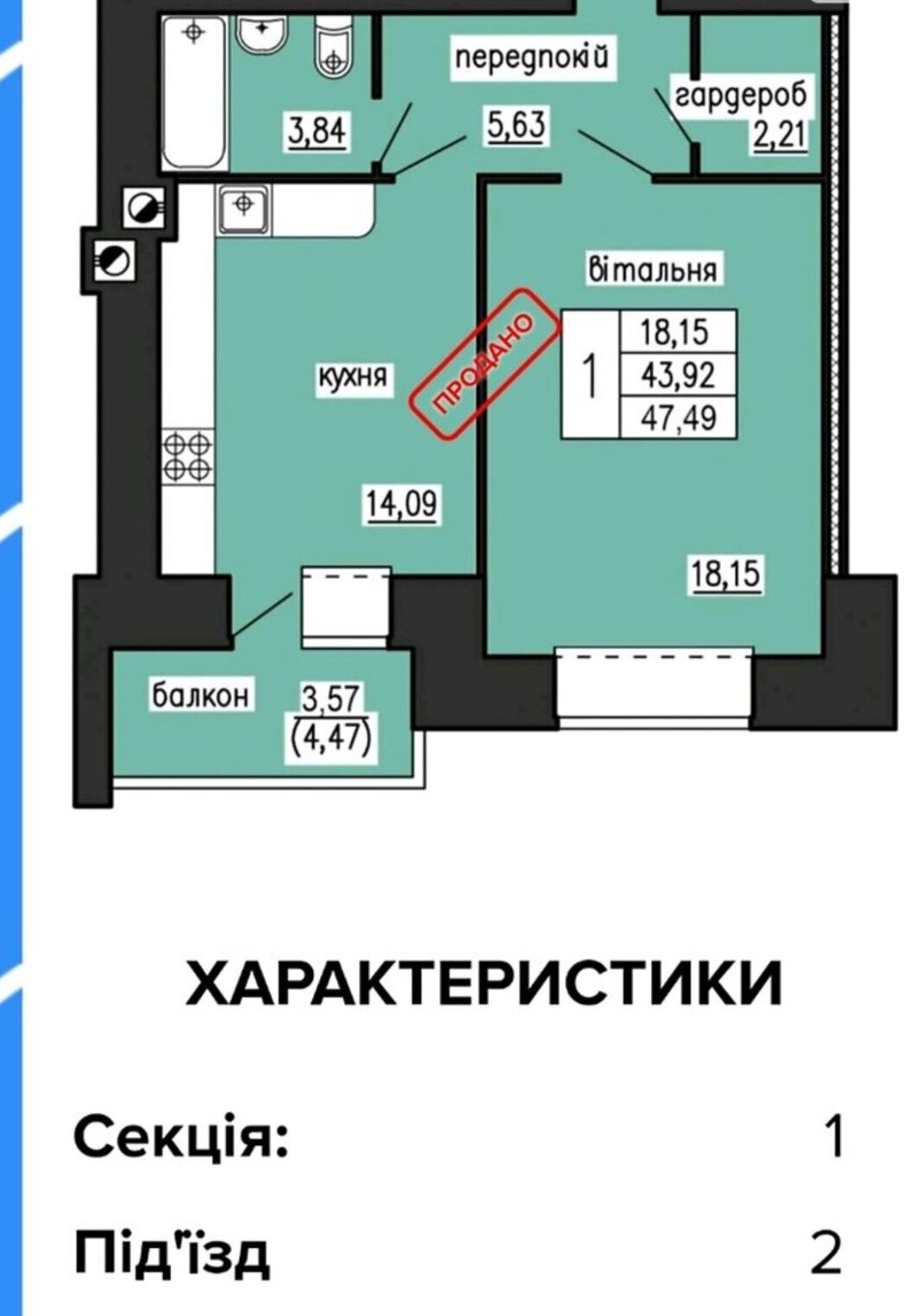 Продається 1 кімнатна квартира, у новобудові, 47,49 м.кв. Будинок цегляний, усі перестінки цегляні, фасад з облицювальної цегли. Утеплення пінопластом товщиною 12 см на всі 100% площі стін.Товщина зовнішньої стіни 80 см.. Штукатурка стін по маяках. Напівсуха стяжка, в тому числі на балконах та лоджіях. Вікна металопластикові 6-камерні, три скла, два з них енергозберігаючі, усі механізми преміум-класу, лоджії та балкони засклені. Лічильники газу, води та електроенергії сучасного типу, передатчики показників через інтернет. Дорогі сучасні металеві вхідні двері, оббиті з обох сторін МДФ-накладками з візерунком. У кожній квартирі встановляється сучасна вентиляційна система рекуператори повітря. У кожній квартирі наявні окремі димоходи для котлів індивідуального опалення. Зручний підземний паркінг.