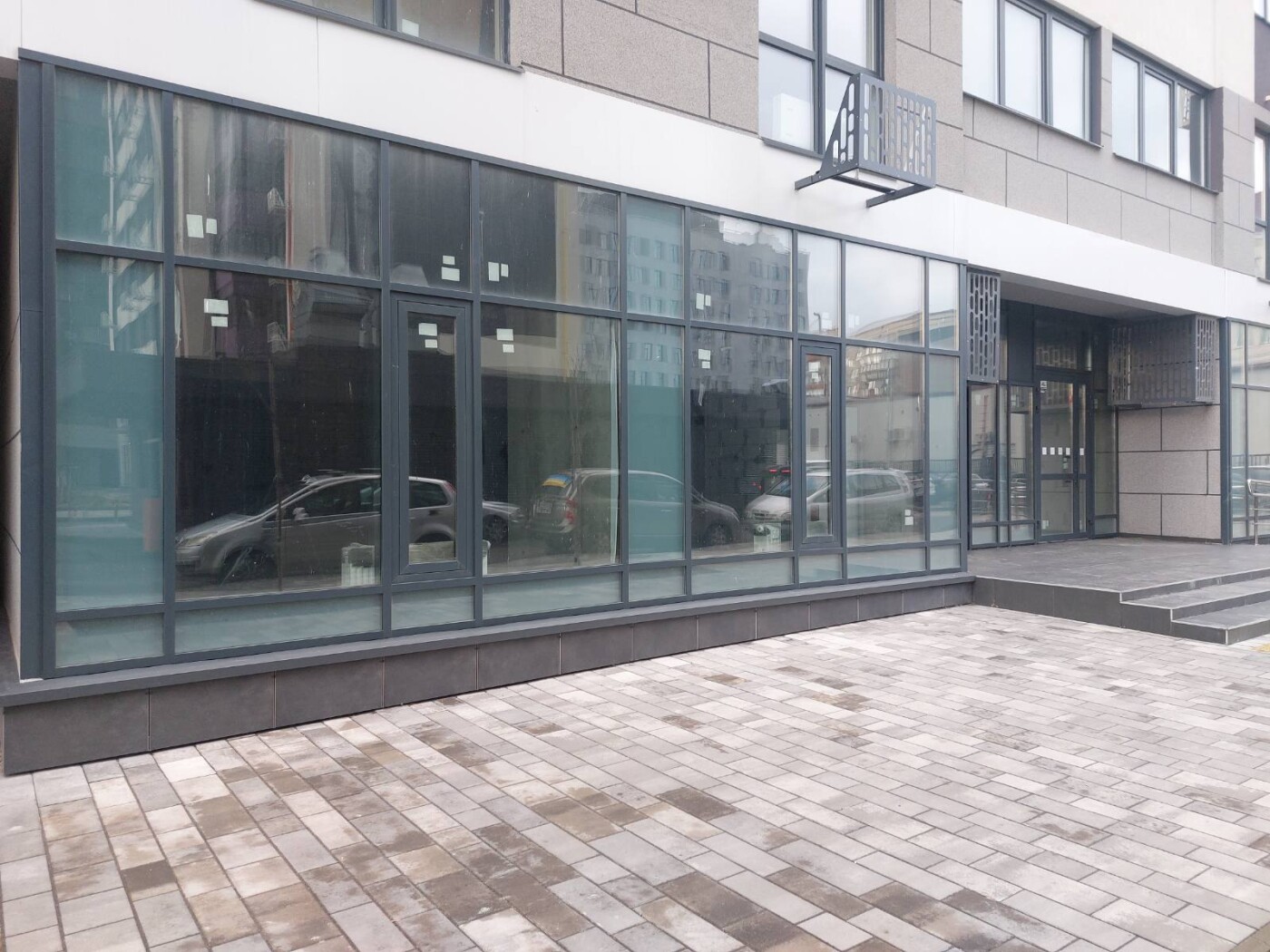 Площа приміщення 77,4 кв.м., окрема вхідна група, великі вітринні вікна.