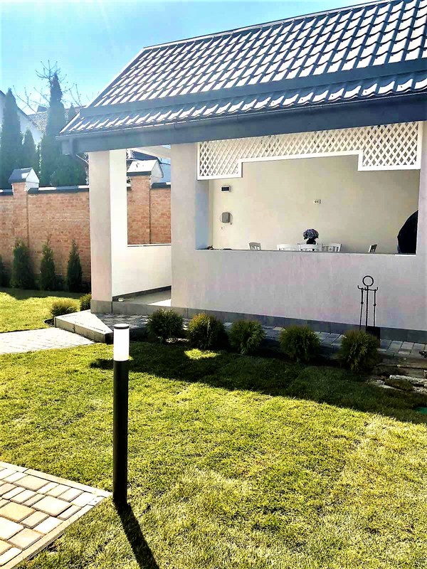 Разумно спроектированная придомовая территория дома, Автополив, красивая подсветка по всему участку, беседка с камином, отсыпка декоративным камнем.
