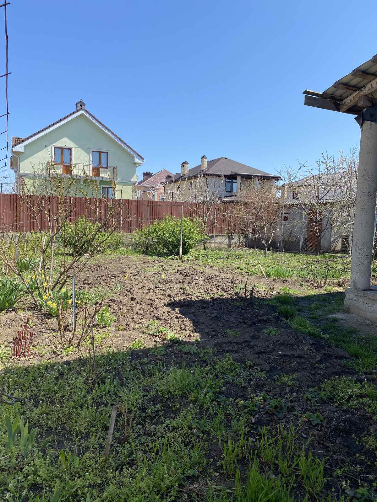 Располагается на участке, площадью 6 соток. Есть гос акт. Крытая терраса. Небольшой огород.