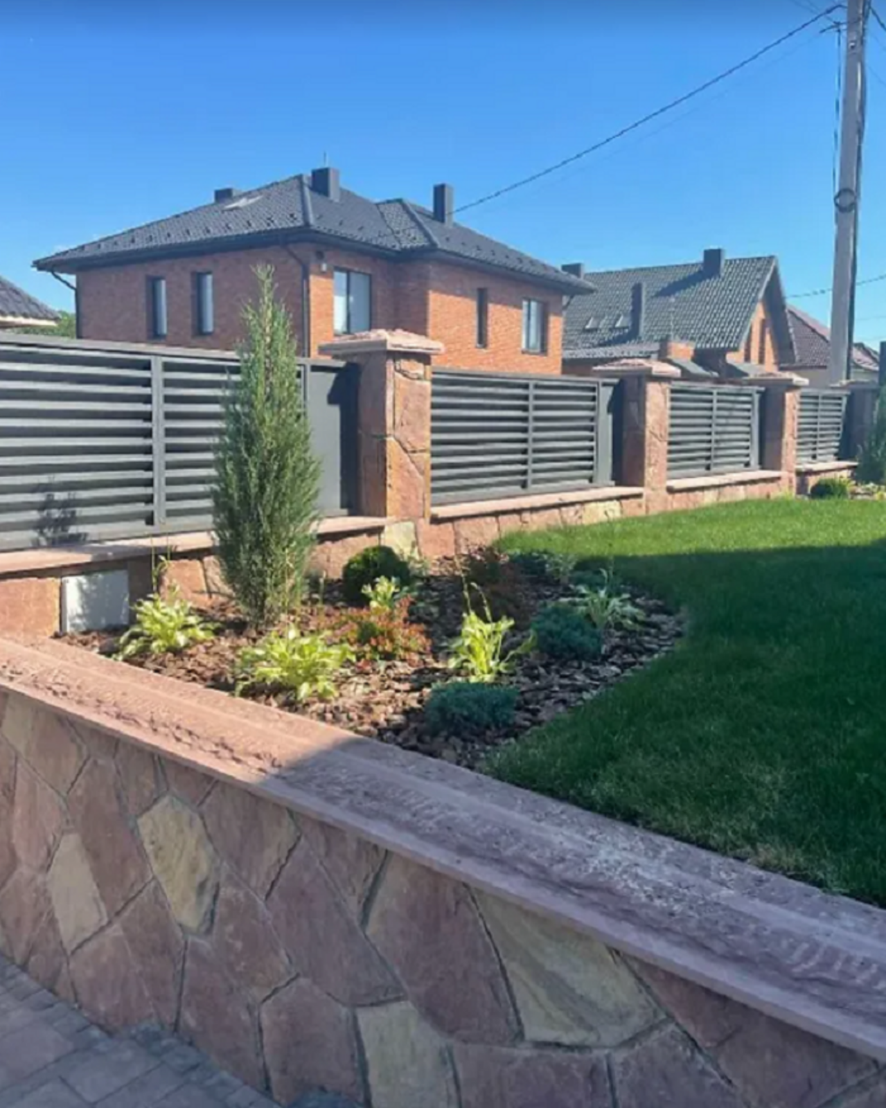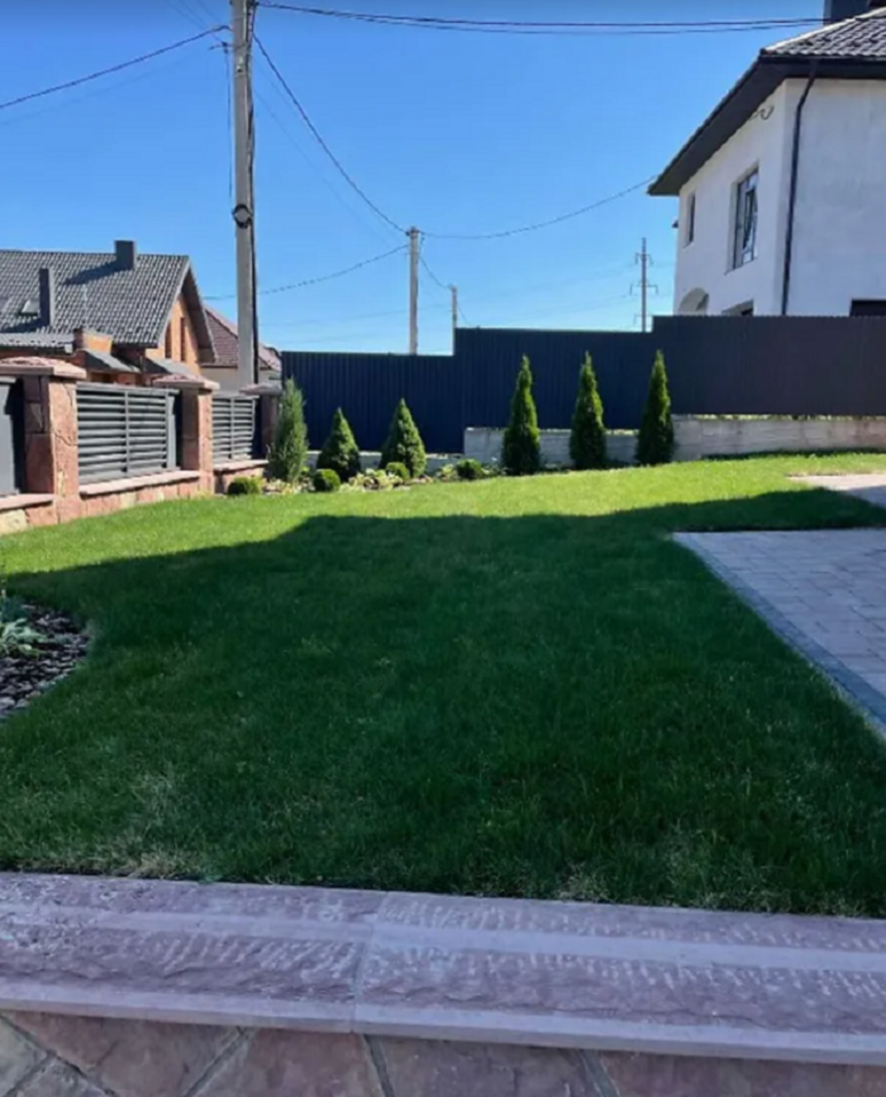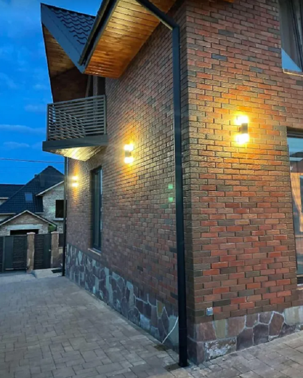 Всюди дорий Італійський керамограніт. Також ексклюзивний чорно - золотий керамограніт у вітальні, кухні, туалеті та ванній кімнаті. Дорога і потужна електрика яка має додатковий вихід під басейн, гараж та генераторну на вулиці. Домофон, відкривання воріт і керування освітленням як з пульта так і з телефону.