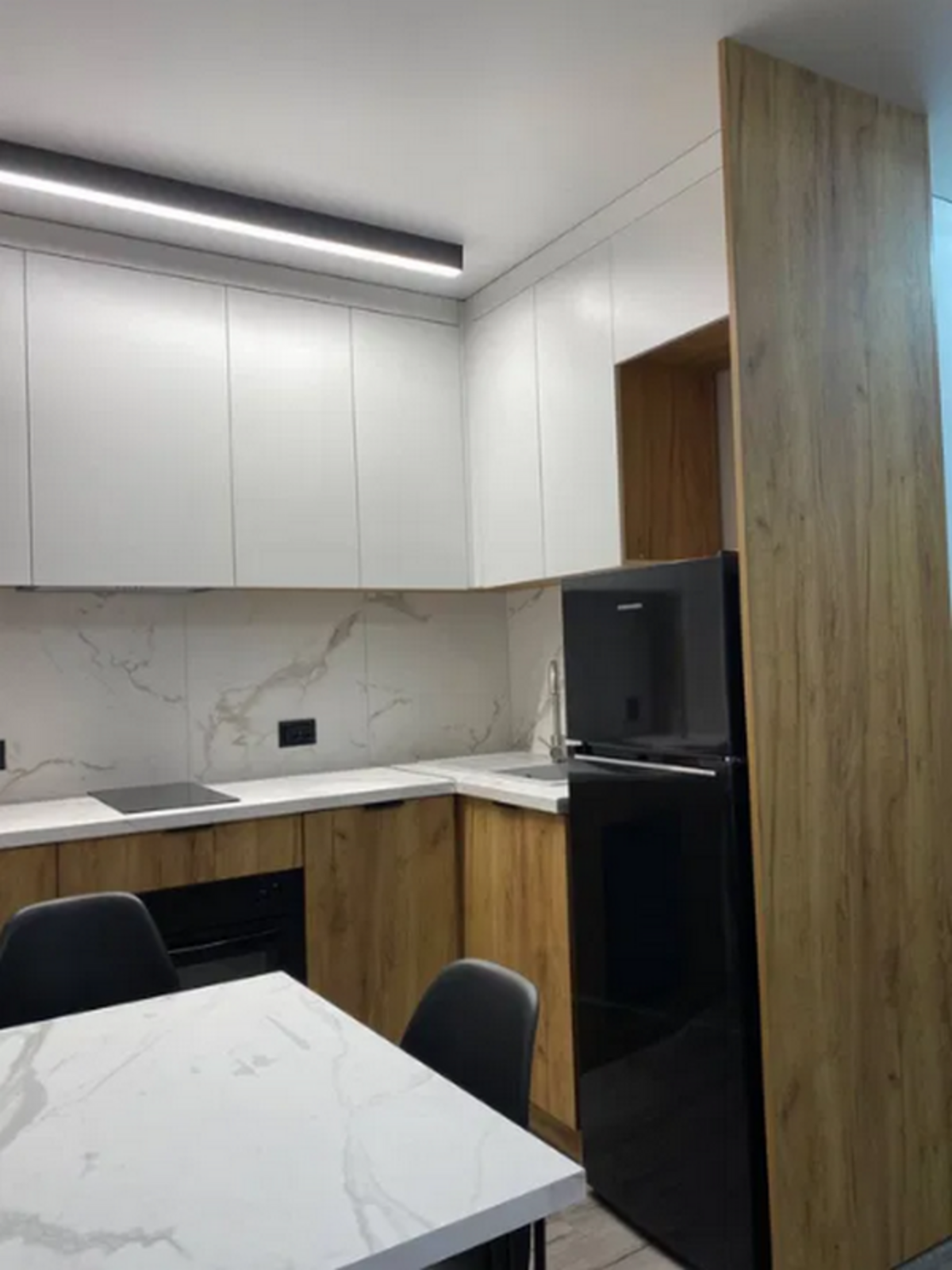 Продається однокімнатна квартира з меблями та побутовою технікою. Квартира з сучасним ремонтом, цегляний будинок та центральне опалення. Меблі: прихожа з підсвіткою, ліжко (2-1,60), стіл робочий, шафа, диван (додаткове спальне місце), стіл та стільці кухонні, кухонний гарнітур. Техніка: посудомийна машина, холодильник, плита, духовка, витяжка, сушка, бойлер, домофон.