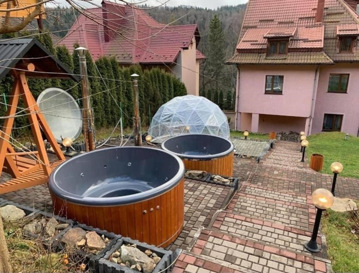 У самому комплексі побудований камінний зал, більярд, теніс, альтанки, мангал, сауна на дровах, дубовий купель, новий чан та джакузі.