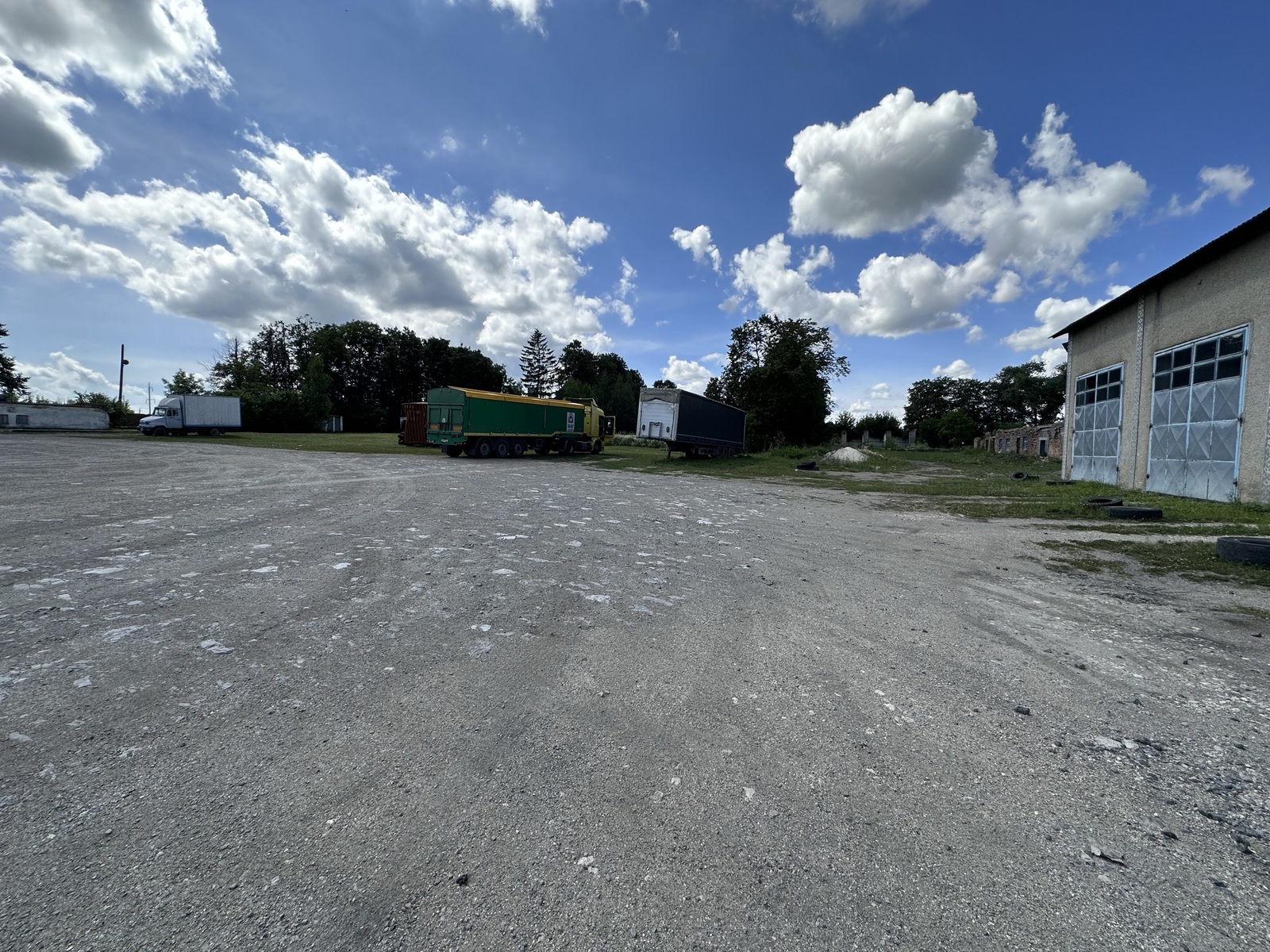 Територія рівна і широка, де з легкістю може розвернутись або розміститись не одна фура. Також є можливість побудувати ще додаткові приміщення при потребі, а також неподалік від ділянки проходить залізнична дорога.